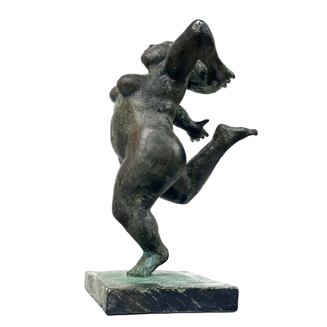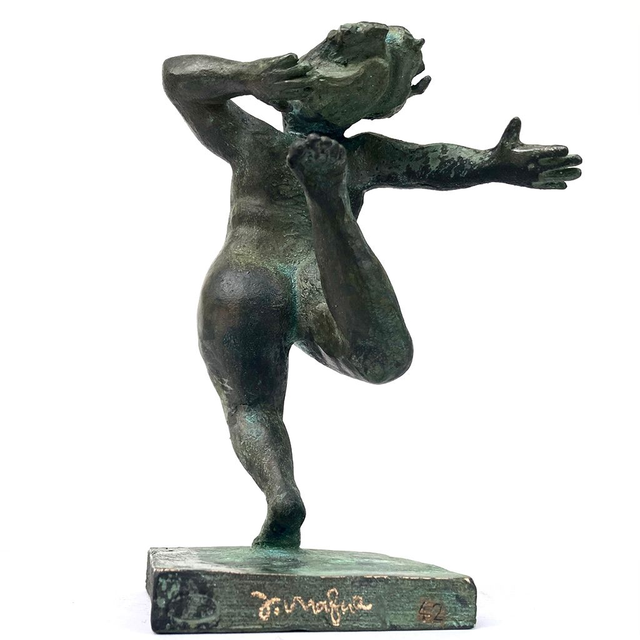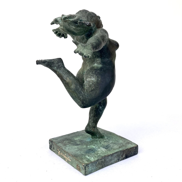 Die Signatur und der Stempel der Kunstgießerei Kayser befinden sich auf der Sockelkante.