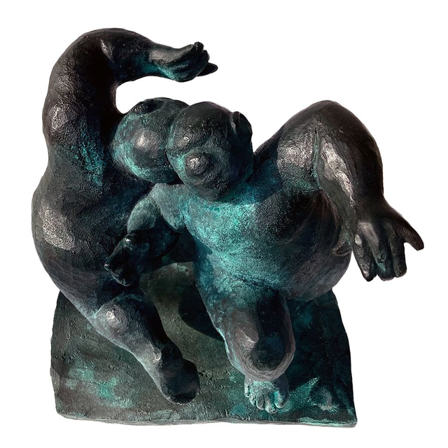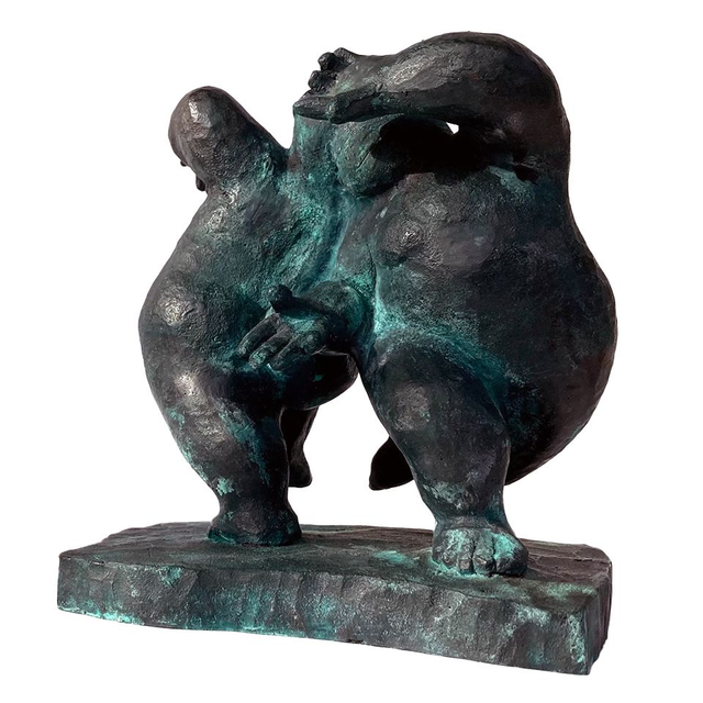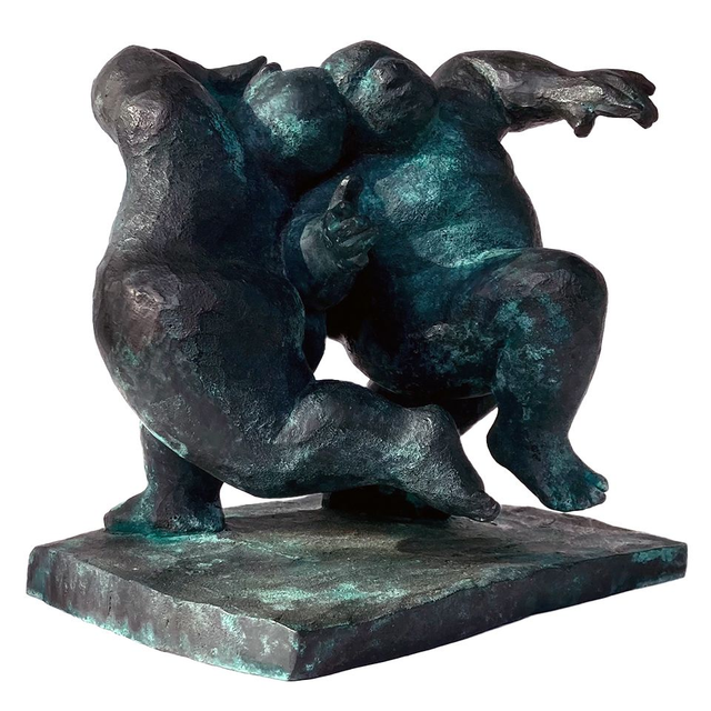 Bei der Trilogie der „Dicken Freunde“, die zwischen 2012 und 2013 entstanden ist, ist der Name Programm. Die dicken Figurenpaare, die jeweils aus einem Würfel herausgearbeitet wurden, stehen einander gegenüber, spielen miteinander, umtanzen sich im Kreis und halten einander fest, wenn einer zu fallen droht.