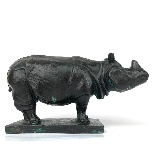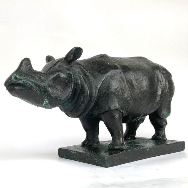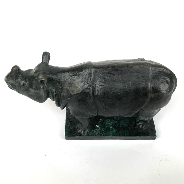 Das schmatzende Panzernashorn entstand 2009 gemeinsam mit der Skulptur des vom Sockel schreitenden Panzernashorns