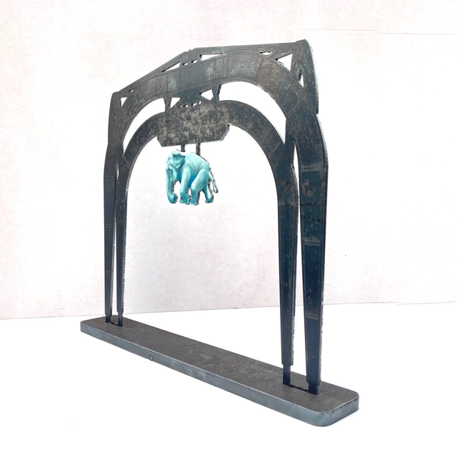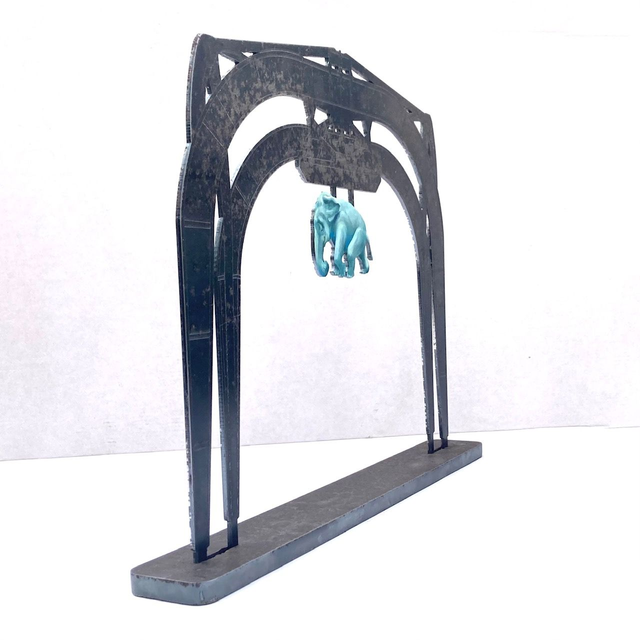 Der bemalte Stahlbogen "Elevated Levitated Elephant" ist Skulptur und Gemälde in einem. Er besteht aus einem rechteckigen soliden Metallsockel und der Stahlsilhouette des Schwebebahnträgers, dessen Mittelpunkt die Elefantin Tuffi samt ihrer Bemalung darstellt.